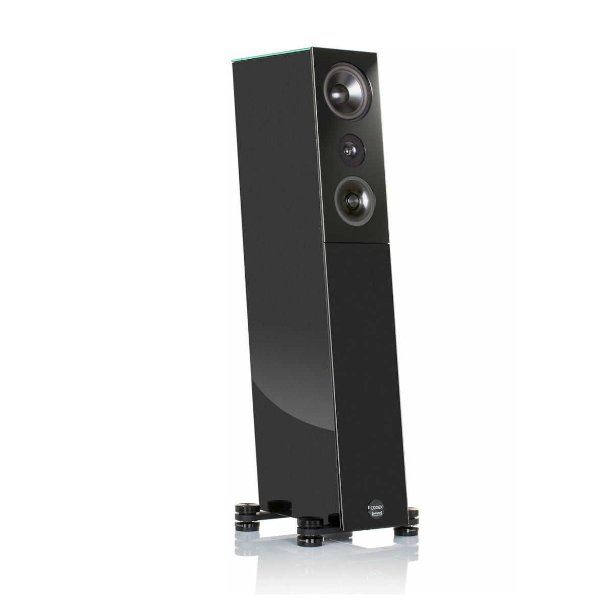 There is always a certain divergence between excellent music reproduction and interior design features. For a rich, deep bass and a solid foundation, loudspeakers require a certain cabinet volume. The Codex successfully manages this tight-rope act, thanks to its intelligent cabinet architecture and variety of available finishes. Despite its volume, the four-way loudspeaker with its clear contours and slender baffle exudes an air of stylish elegance. Especially the high-gloss glass finishes, combined with bright color tones, almost lends the loudspeakers an appearance of weightlessness.
