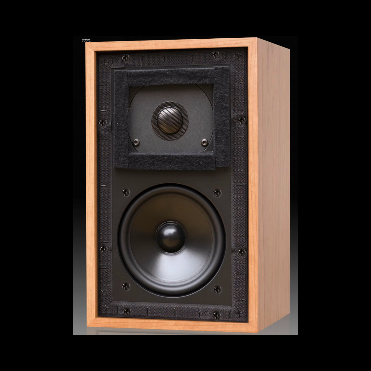As you would expect, our version - engineered by Derek Hughes - includes authentic details such as the perforated metal tweeter grille, thick felt pads surrounding the tweeter, and Velcro rather than our usual hidden magnets to secure the grille frame. The cabinet uses 12mm panels and a fixed rear panel, according to BBC Designs Department's specification.