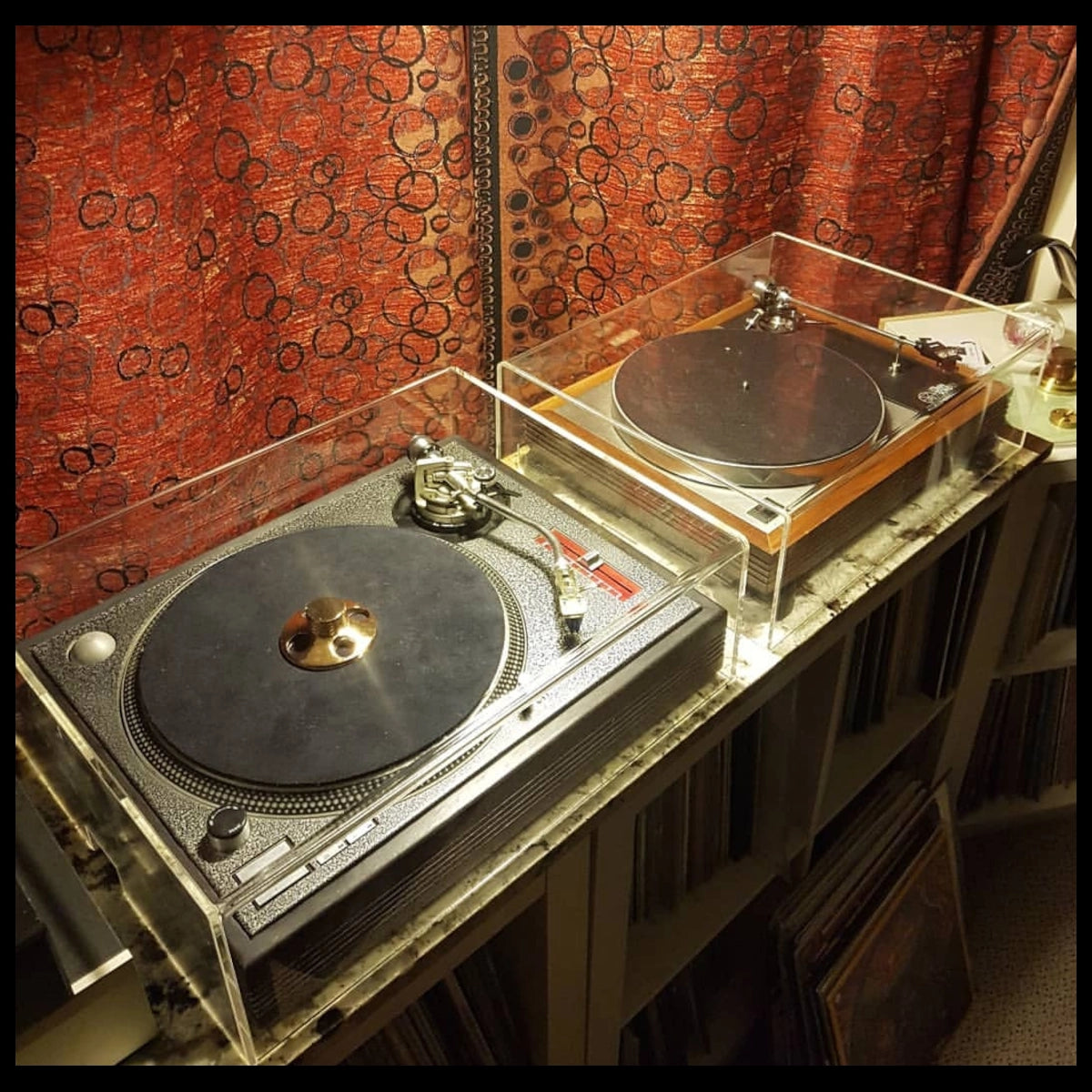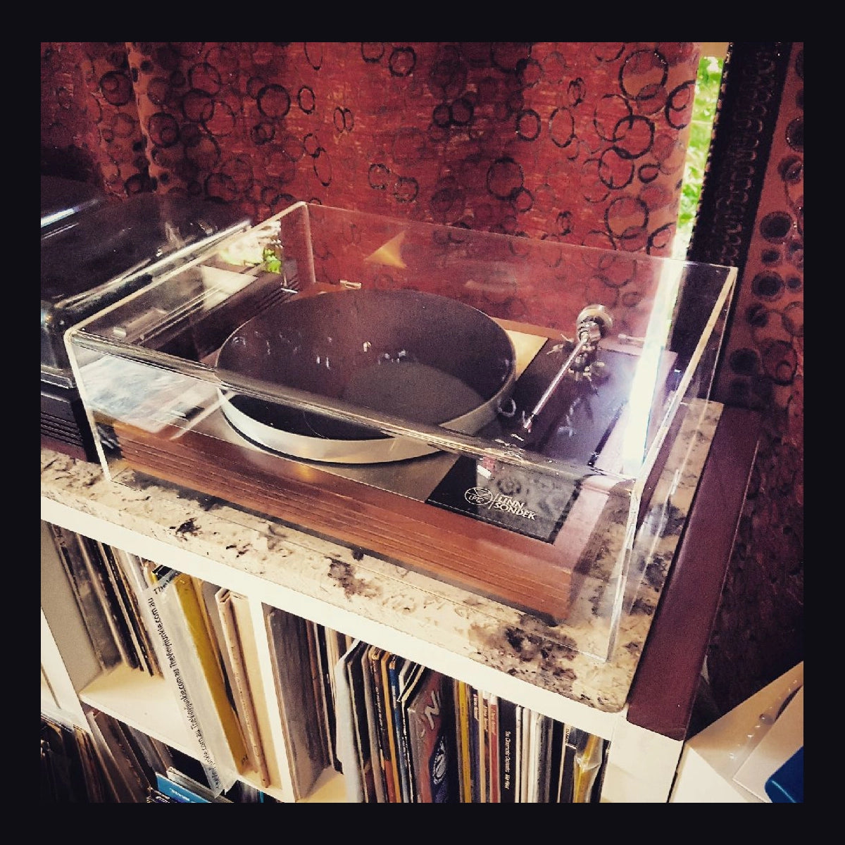 A custom made acrylic dust cover for Linn Sondek LP12 turntable.