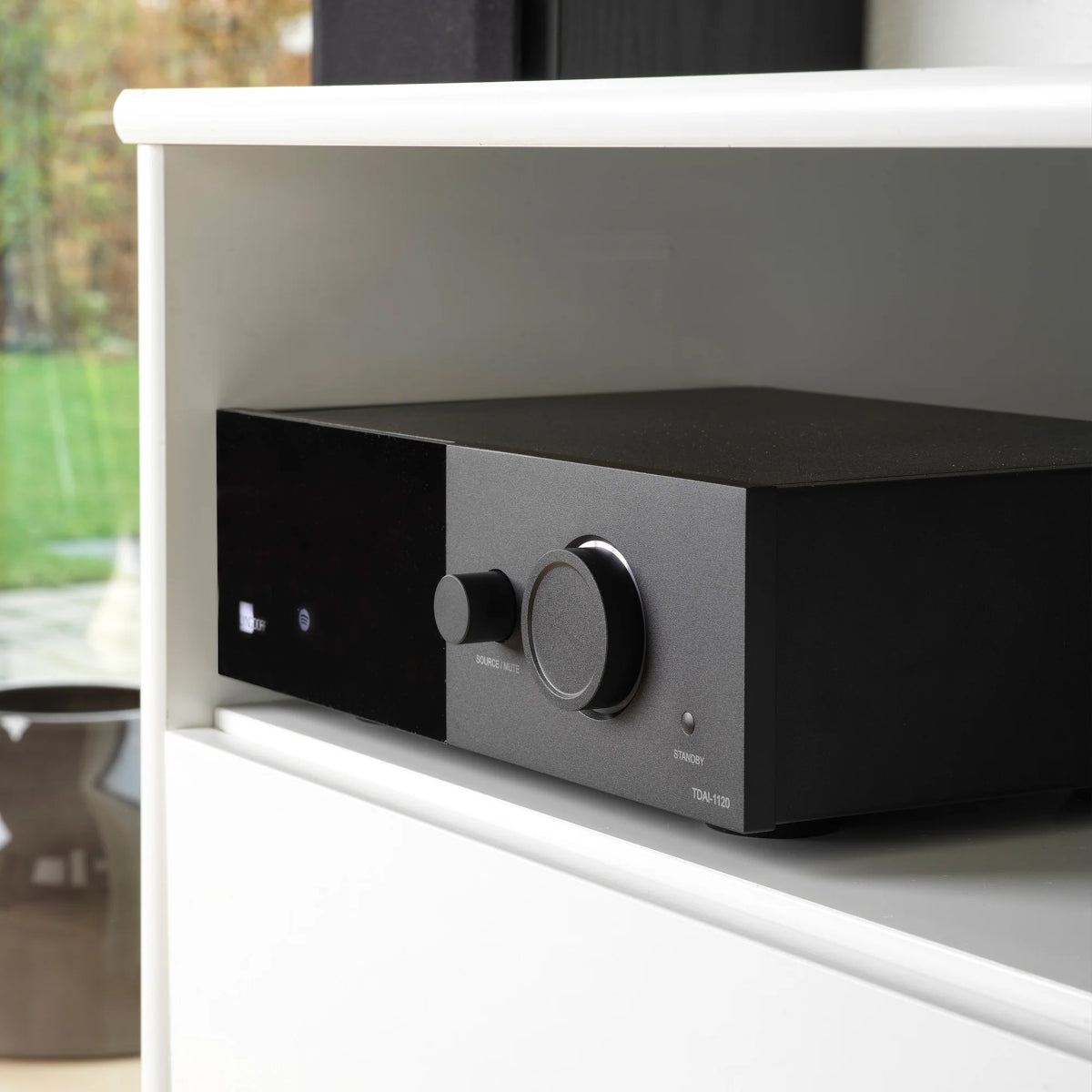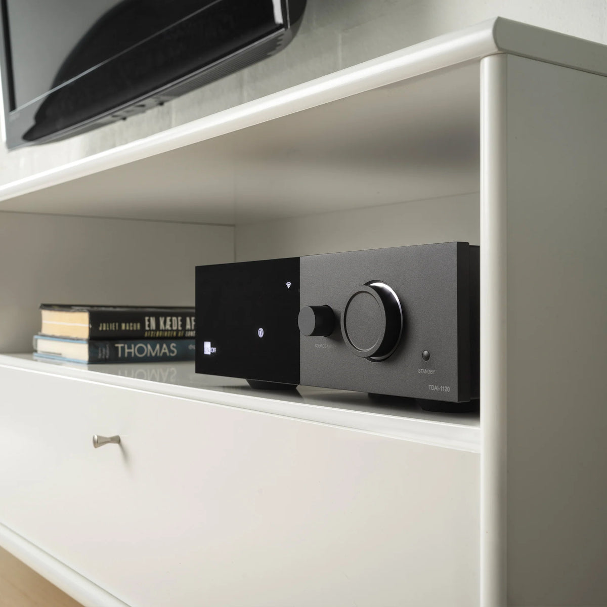 The TDAI-1120 ships complete with RoomPerfect™, providing the ultimate listening experience. With RoomPerfect™, the TDAI-1120 delivers a perfect musical experience in all living rooms. Without the need for extensive acoustic treatment, you get a sound system with optimal frequency response, seamless level alignment, and bass management that perfectly integrates the speakers and subwoofers.