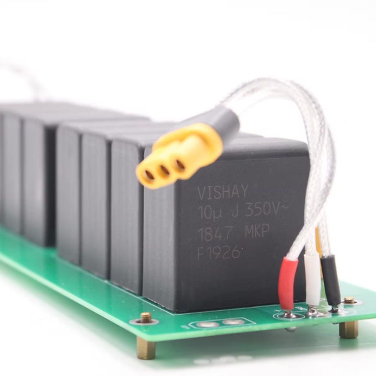 The DAZZLE’s power stage uses four large, rare in its class, 10 µF Vishay MKP film capacitors, paired with four 6,800 µF high-endurance, Kinki Studio–tuned reservoir capacitors for AC/DC rectification, per channel.